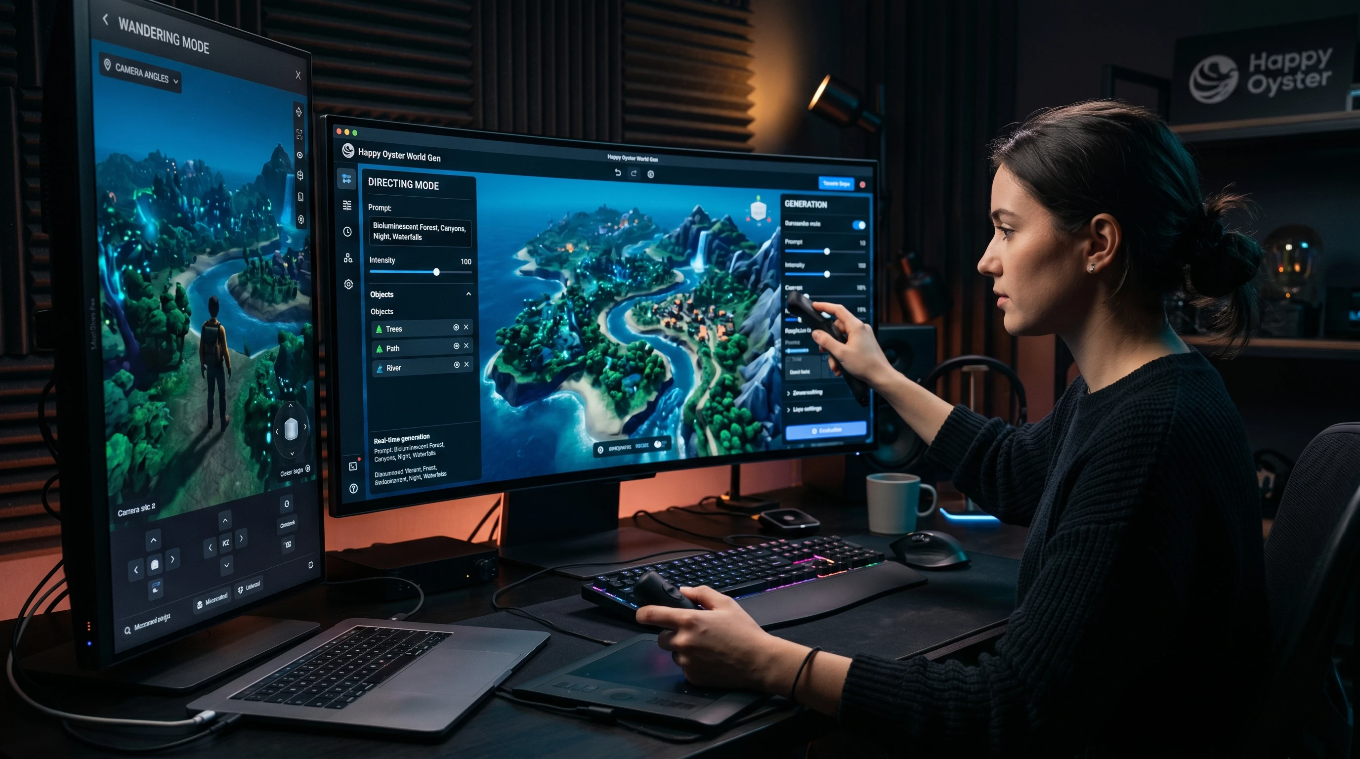 Happy Oyster's approach to world generation revolves around two distinct interaction paradigms. Each serves a different creative workflow.