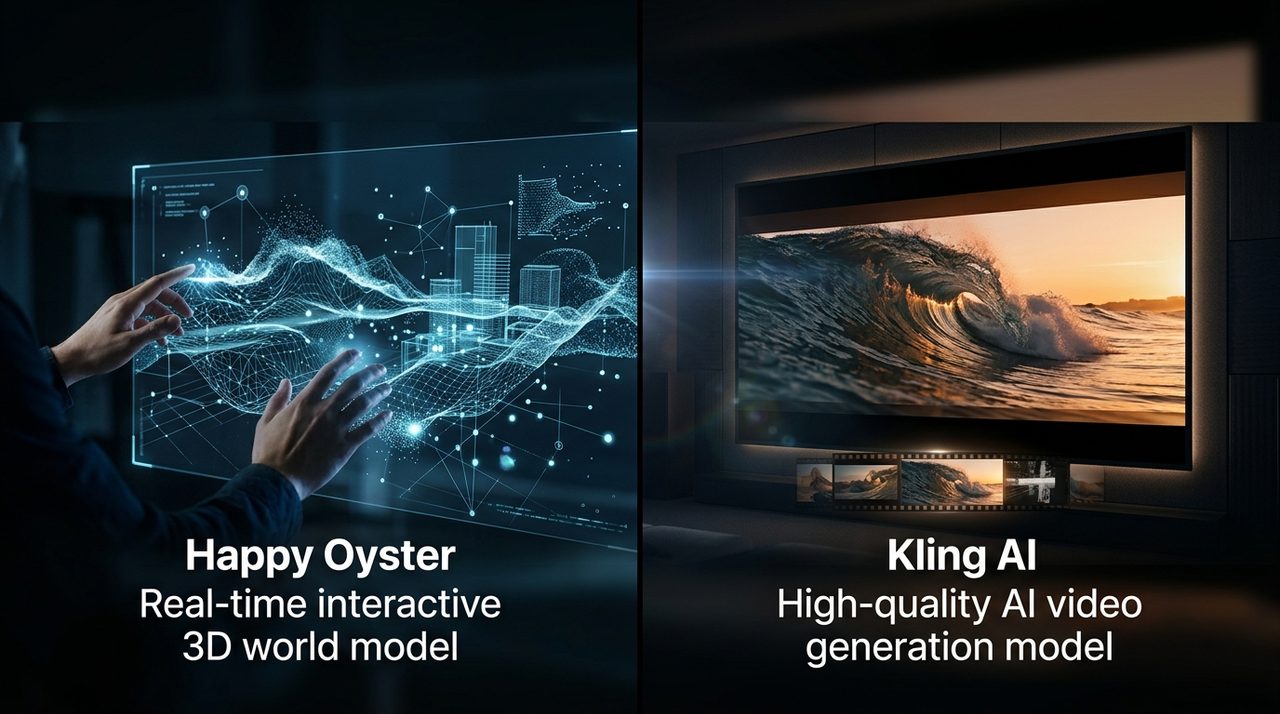 Happy Oyster (Real-time interactive 3D world model) compared to Kling AI (High-quality AI video generation model by Kuaishou.).