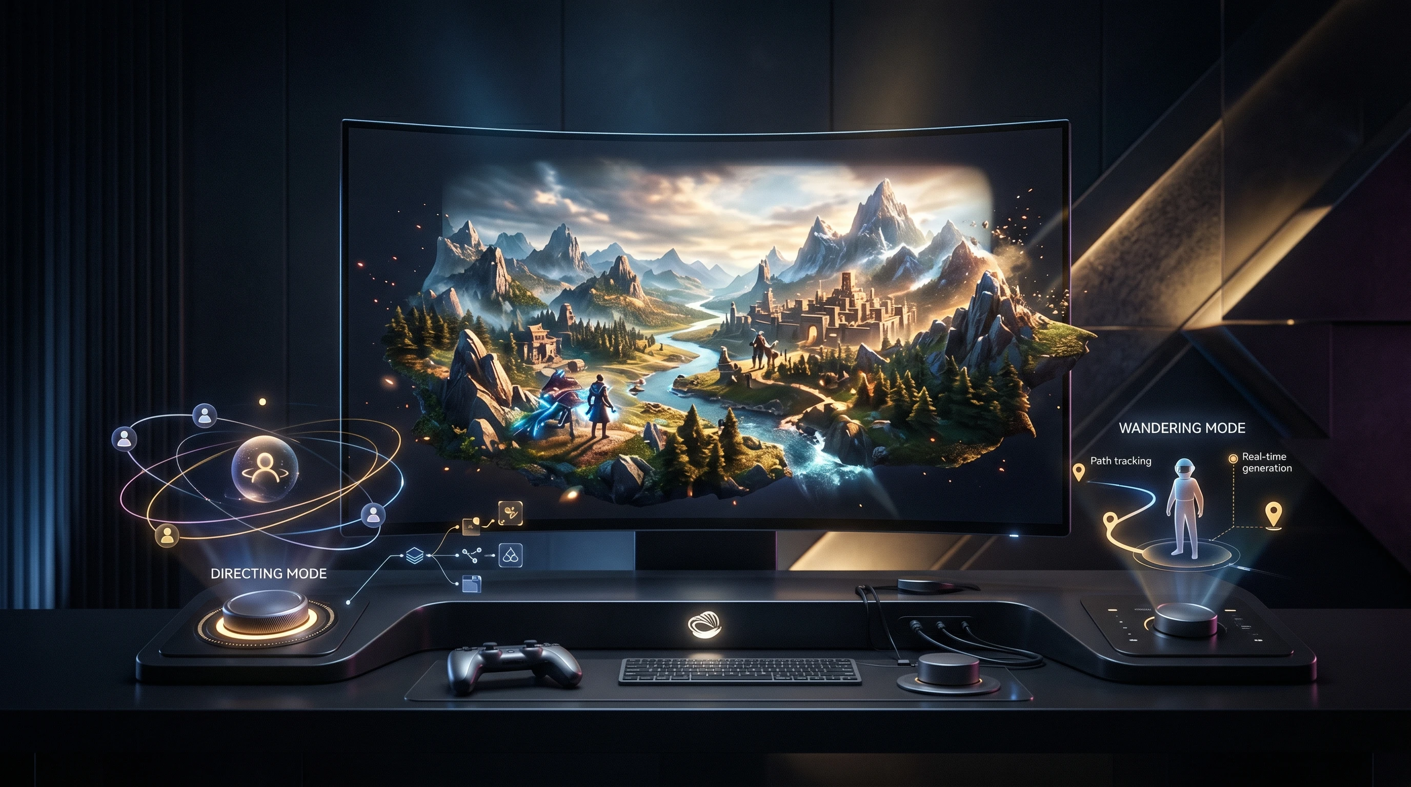Directing (real-time world building) and Wandering (first-person exploration)
